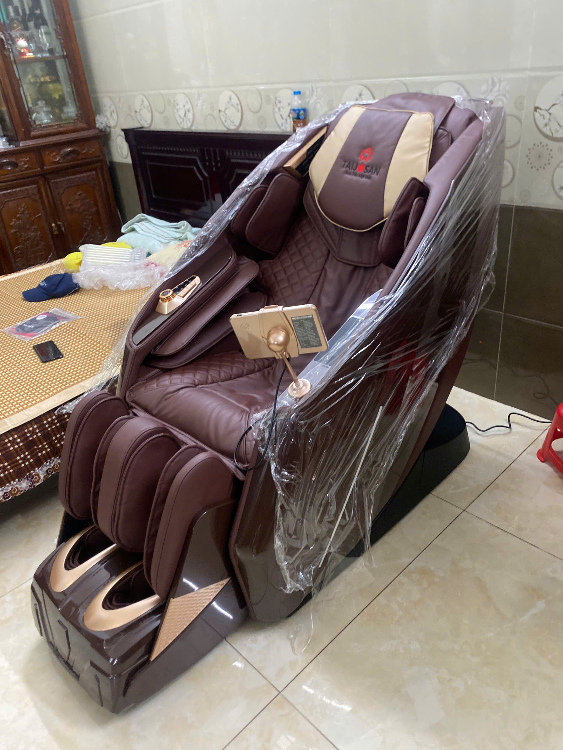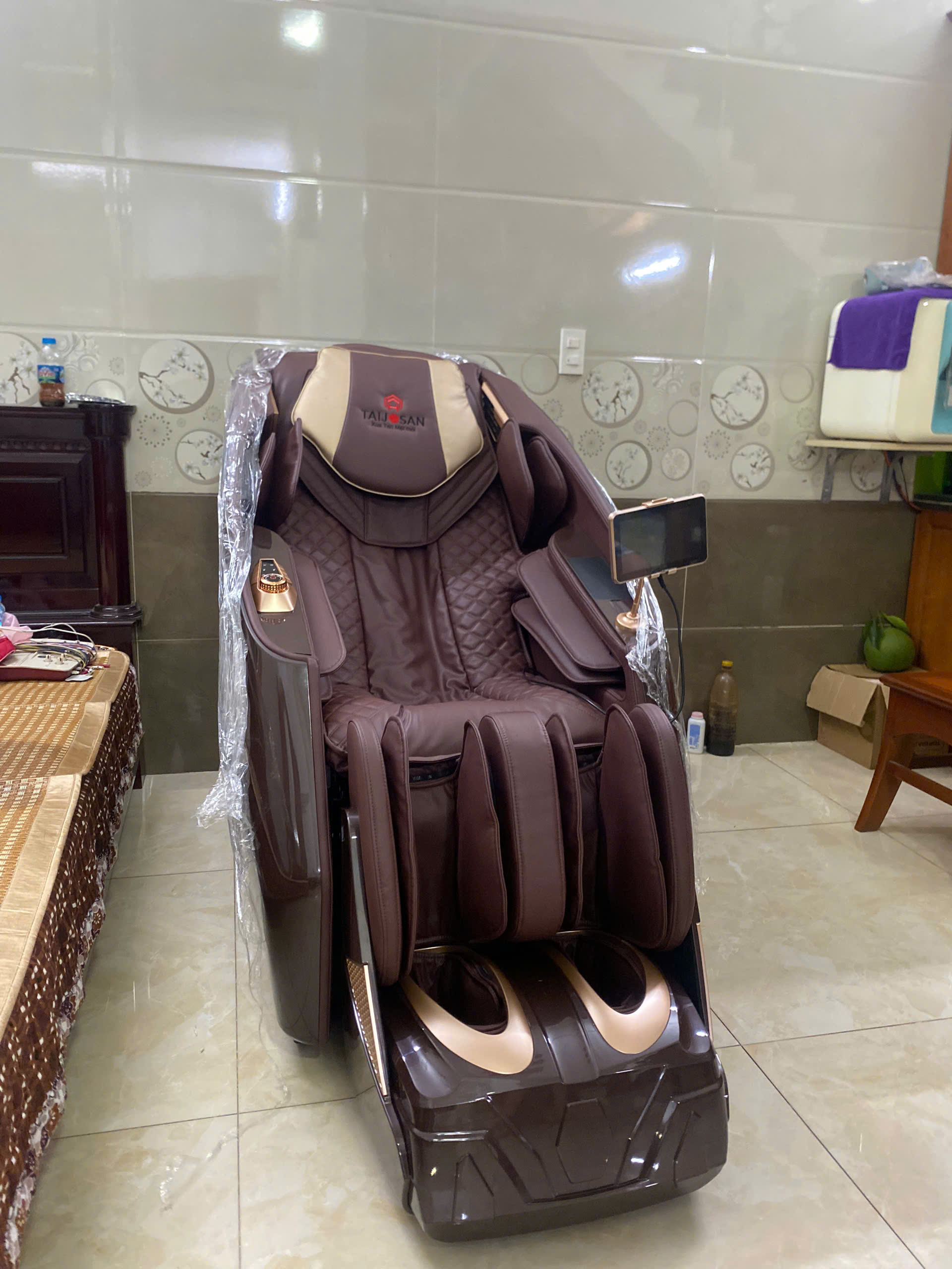 II. Đặc điểm của ghế massage Taijosan AH-FJ336 1. Ghế massage Taijosan AH-FJ336 thiết kế sang trọng, tinh tế Khung massage của ghế Taijosan AH-FJ336 được thiết kế với chiều dài vượt trội lên đến 145cm từ phần cổ đến mông đùi của người dùng. Tại những điểm đau mỏi chính như cổ, vai, lưng, eo, hông, đùi, khung massage SL có những đường cong để đi sát hơn với những đường cong của cơ thể, điều này giúp các đường di chuyển của bi lăn đi sát và sâu hơn, nhấn sâu vào các huyệt đạo trên cơ thể mang đến trải nghiệm massage tuyệt vời. Ghế massage Taijosan AH-FJ336 sử dụng chất liệu da Microfiber cao cấp, có cấu trúc giống da thật đến 80%. Đồng thời có độ bền gấp 3 các loại da thông thường, có khả năng chống ẩm, chống thấm và chống nóng vượt trội. Mang lại cảm giác thoáng mát, mềm mịn và không gây kích ứng da cho người sử dụng. Với công nghệ con lăn massage vượt trội, Taijosan AH-FJ336 có khả năng thực hiện được động tác nhấn mạnh, nhấn sâu tùy chỉnh giúp bạn cảm thấy như được massage từ tay một nhân viên massage chuyên nghiệp. Không chỉ dừng lại ở đó, hệ thống con lăn trên Taijosan AH-FJ336 có khả năng tùy chỉnh được độ nông – sâu, mạnh – yếu, rộng – hẹp theo nhiều cấp độ, phù hợp sở thích người sử dụng. Túi khí “kép chuyên sâu” được trang bị ở vùng vai, tay, hông và chân của ghế hoạt động luân phiên co bóp vùng cơ tại các vị trí tăng độ đàn hồi. Dưới áp lực của túi khí sẽ nhanh chóng giảm thiểu đau nhức cơ bắp, tăng cường lưu thông máu, mang lại sự thoải mái cho cơ thể. Taijosan AH-FJ336 được thiết kế vô cùng thông minh với bộ tự động điều chỉnh tư thế nằm theo độ dài của chân người dùng. Khi nằm vào ghế,ghế sẽ thực hiện tính năng đo chiều dài của cơ thể để người sử dụng có được tư thế nằm massage tốt nhất.2. Một số tính năng nổi bật của siêu phẩm ghế massage Taijosan AH-FJ336 Bảng điều khiển LCD cảm ứng 7 inch với 2 ngôn ngữ tùy chỉnh Taijosan AH-FJ336 sử dụng bảng điều khiển cảm ứng IPS LCD rộng 7 inch với độ phân giải cao, hiển thị rõ ràng các chế độ và bài tập đã được tích hợp sẵn. Không những vậy, khi người dùng lựa chọn bài tập, trên màn hình sẽ hiện lên hình ảnh mô phỏng hoạt động của các thao tác massage. Vì thế, người dùng sẽ dễ dàng tùy chỉnh cường độ và các bài tập phù hợp với thể trạng của bản thân. Taijosan AH-FJ336 tích hợp hai ngôn ngữ tiếng Anh và tiếng Việt giúp người dùng trải nghiệm massage tiện lợi hơn bao giờ hết. Vì thế, người cao tuổi dễ dàng lựa chọn chế độ massage theo nhu cầu. Ngoài ra, trên thành ghế còn được thiết kế núm vặn điều chỉnh thông minh, giúp người dùng dễ dàng điều chỉnh cường độ và mức độ massage theo từng bài tập, thích hợp theo thể trạng của bản thân. 32 bài tập tự động được cài đặt sẵn với các kỹ thuật massage tuyệt đỉnh Không chỉ cải tiến và nâng cấp về công nghệ,Taijosan AH-FJ336 còn được cài đặt 32 bài tập tự động, đem lại trải nghiệm massage trọn vẹn nhất cho từng đối tượng. . Cải thiện cơ bắp: Thư giãn, Cổ & vai, Phục hồi sức khỏe, Định hình hông, Massage chân và bàn chân, Massage toàn thân. . Massage hoàn toàn: Massage kiểu thá, Massage kiểu trung hoa, Chăm sóc đốt cột sống, Đong đưa,Vận động & kéo giãn,Thiền. . Massage cao cấp: CEO, Phụ nữ, Người lớn tuổi,Ít vận động,Phục hồi thể thao, Nhân viên văn phòng . Trí tuệ nhân tạo AI: Chăm sóc sức khỏe, Ngủ trưa,Giảm đau,Ngủ ngon,Phục hồi cơ thể Thoải mái. Ghế massage Taijosan AH-FJ336 còn có các kỹ thuật massage tuyệt đỉnh của con lăn như: xoa bóp, đấm, vỗ, day, miết,… theo từng chế độ bài tập. Các động tác uyển chuyển của bi lăn giúp cơ thể được massage sâu tới từng điểm đau, đem lại cho người dùng cảm giác thoải mái, dễ chịu như được thư giãn ngoài spa. Chế độ Không trọng lực zero gravity Sản phẩm được tích hợp tính năng chế độ massage Zero Gravity không trọng lực, mang lại cảm giác massage tuyệt vời và hiệu quả tốt hơn. Các con lăn massage tiếp xúc tốt hơn ở khu vực thắt lưng, giúp thực hiện các thao tác massage chuyên biệt, hỗ trợ xoa dịu các cơn đau mỏi, giảm áp lực lên cột sống và giúp cơ thể được thư giãn hoàn toàn. Mang lại cảm giác massage thư giãn, bay bổng và êm ái tựa như không gian bên ngoài không gian vũ trụ. Chế độ massage nhiệt hồng ngoại Hệ thống nhiệt hồng ngoại trên ghế Taijosan AH-FJ336 được bố trí tại nhiều vị trí như toàn thân, thân trên, thân dưới. Mức nhiệt duy trì 40°C – 50°C giúp cơ thể được làm ấm nhanh chóng. Kết hợp với thao tác xoa bóp, massage của con lăn và túi khí, giúp cơ thể giảm đau nhanh chóng, tăng cường lưu thông máu tới các chi. Đồng thời mang lại cảm giác dễ chịu, giải phóng các vùng cơ bị căng cứng và giúp người dùng có giấc ngủ ngon hơn.Thư giãn cơ thể với chức năng massage và thư thái